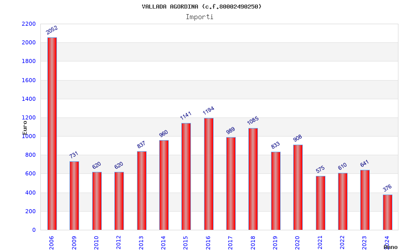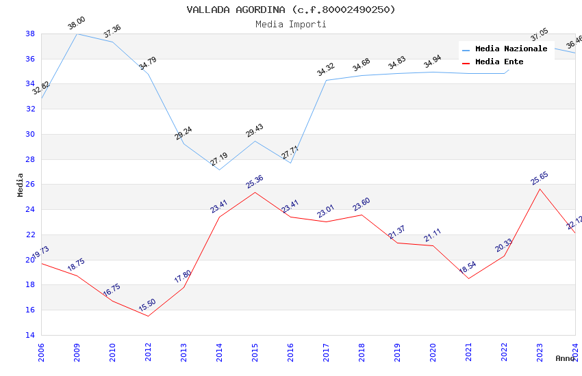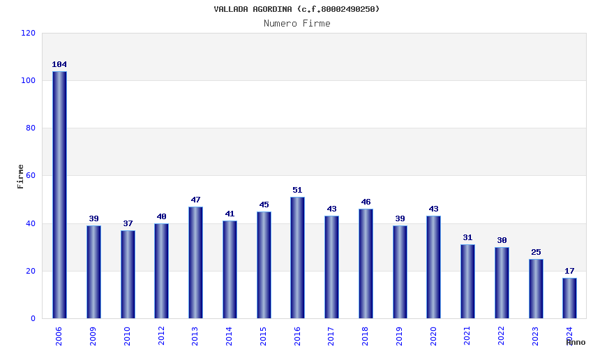 | Anno | Firme | Importi | Media | Naz. | Reg. | Prov. | Comu. |