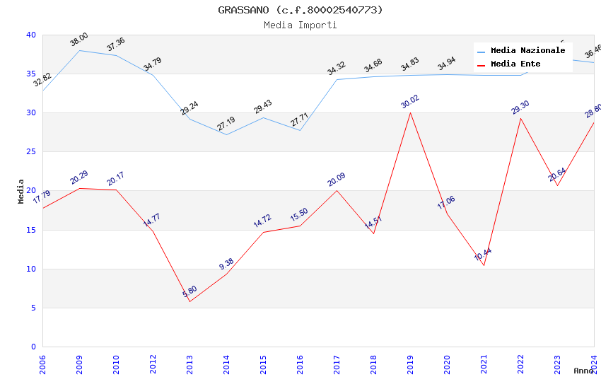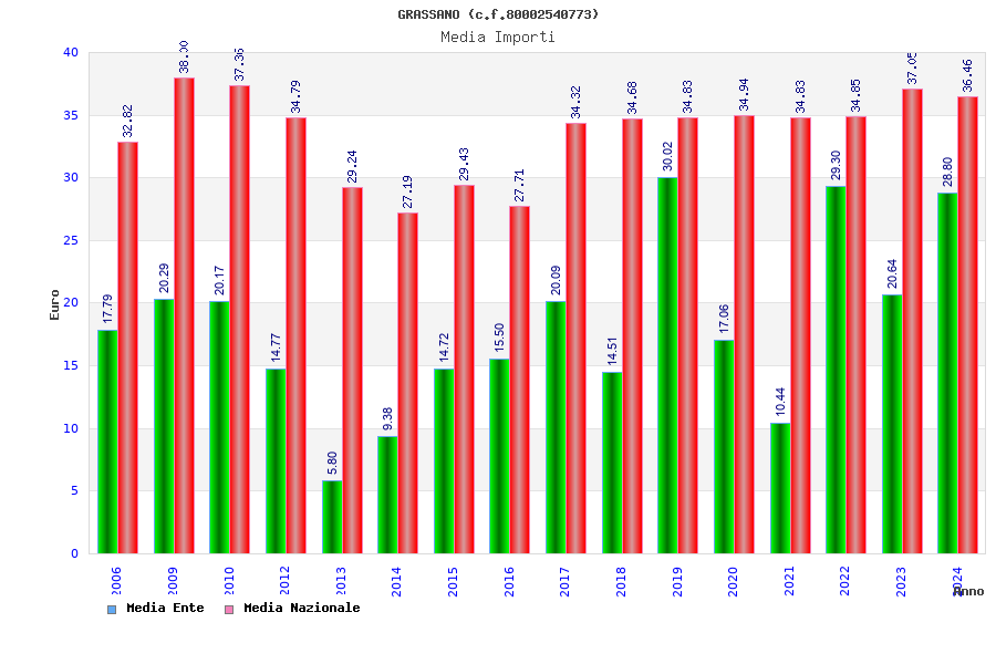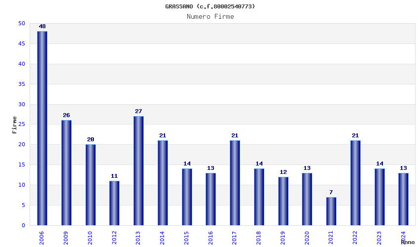| Anno | Firme | Importi | Media | Naz. | Reg. | Prov. | Comu. |