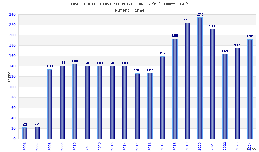 | Anno | Firme | Importi | Media | Naz. | Reg. | Prov. | Comu. |