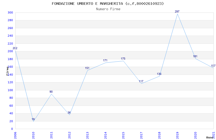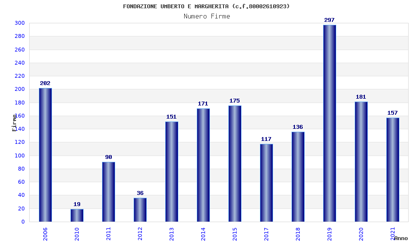 | Anno | Firme | Importi | Media | Naz. | Reg. | Prov. | Comu. |