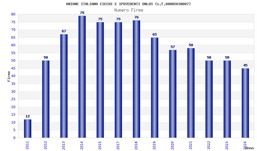 | Anno | Firme | Importi | Media | Naz. | Reg. | Prov. | Comu. |