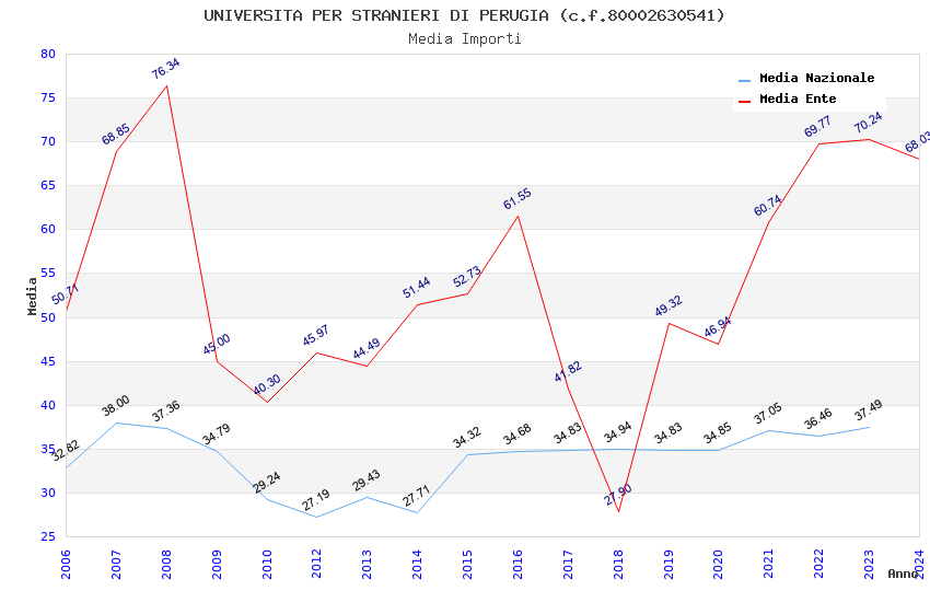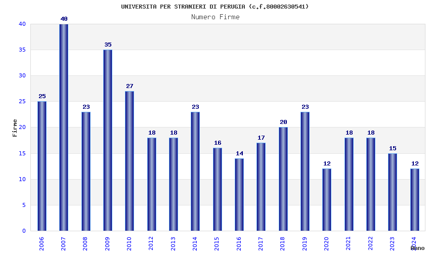 | Anno | Firme | Importi | Media | Naz. | Reg. | Prov. | Comu. |