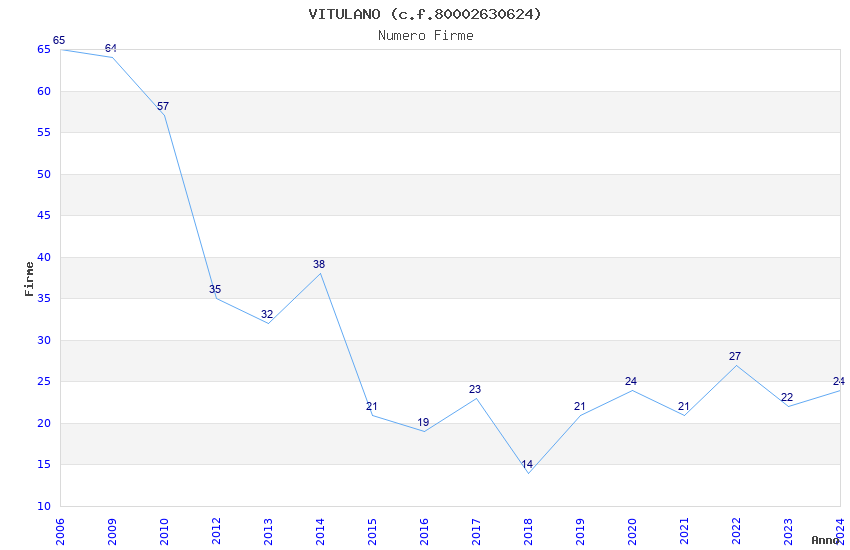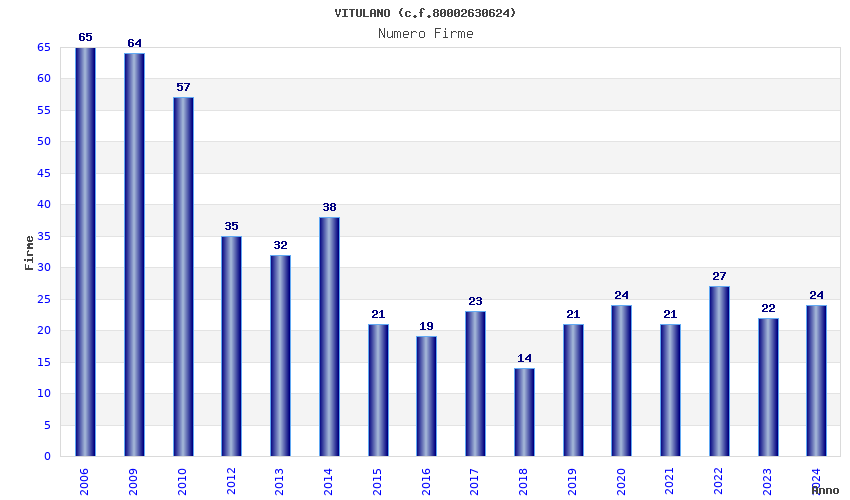 | Anno | Firme | Importi | Media | Naz. | Reg. | Prov. | Comu. |