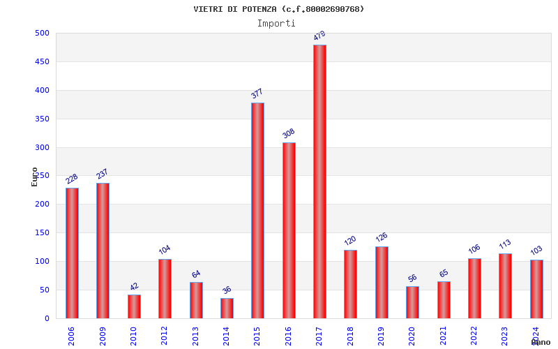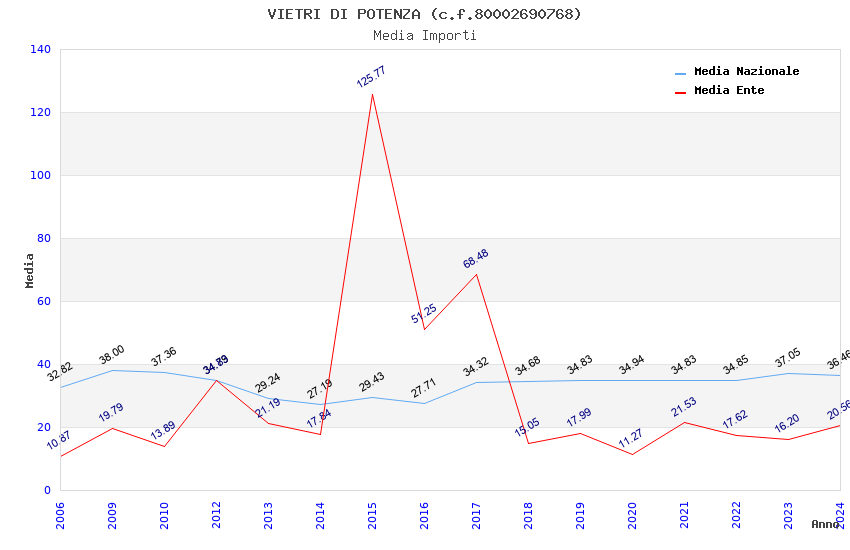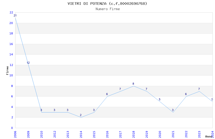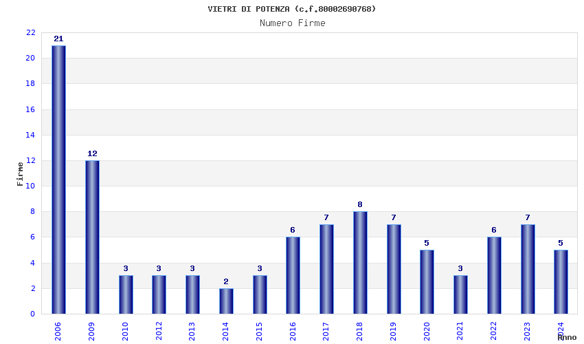 | Anno | Firme | Importi | Media | Naz. | Reg. | Prov. | Comu. |