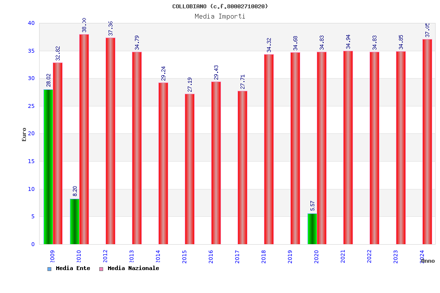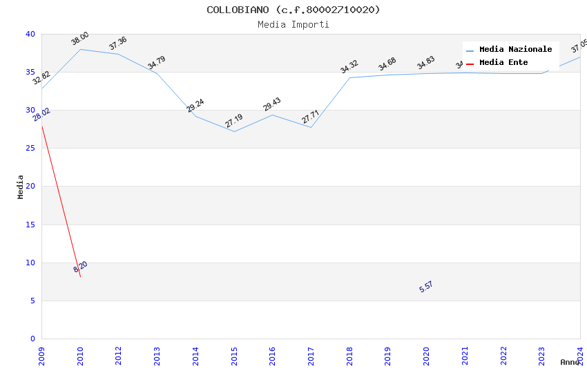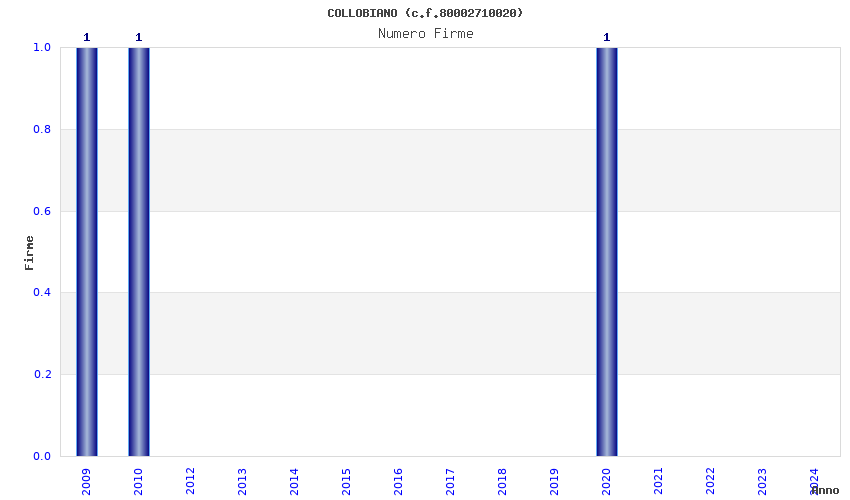 | Anno | Firme | Importi | Media | Naz. | Reg. | Prov. | Comu. |