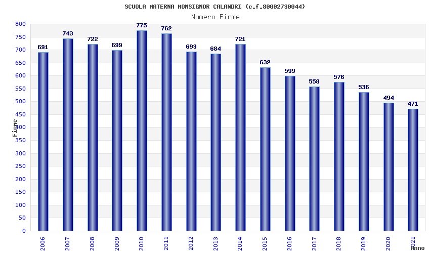| Anno | Firme | Importi | Media | Naz. | Reg. | Prov. | Comu. |
