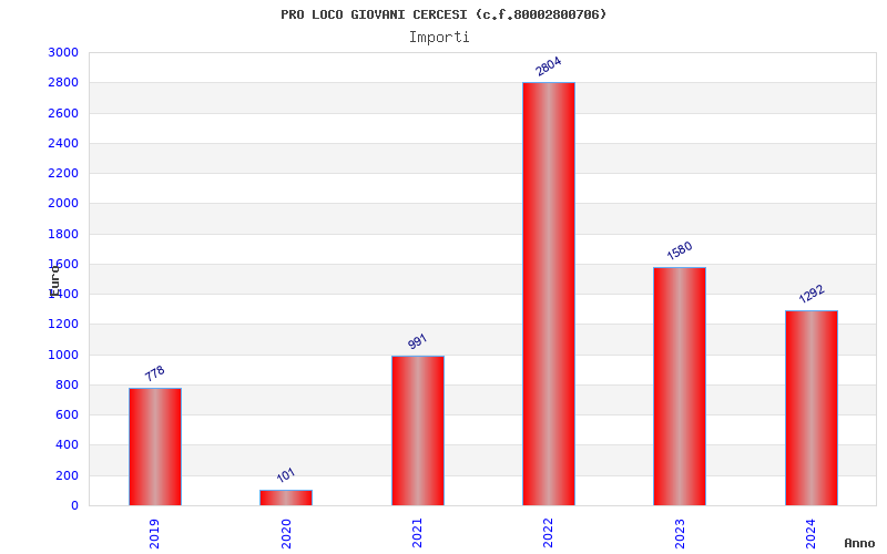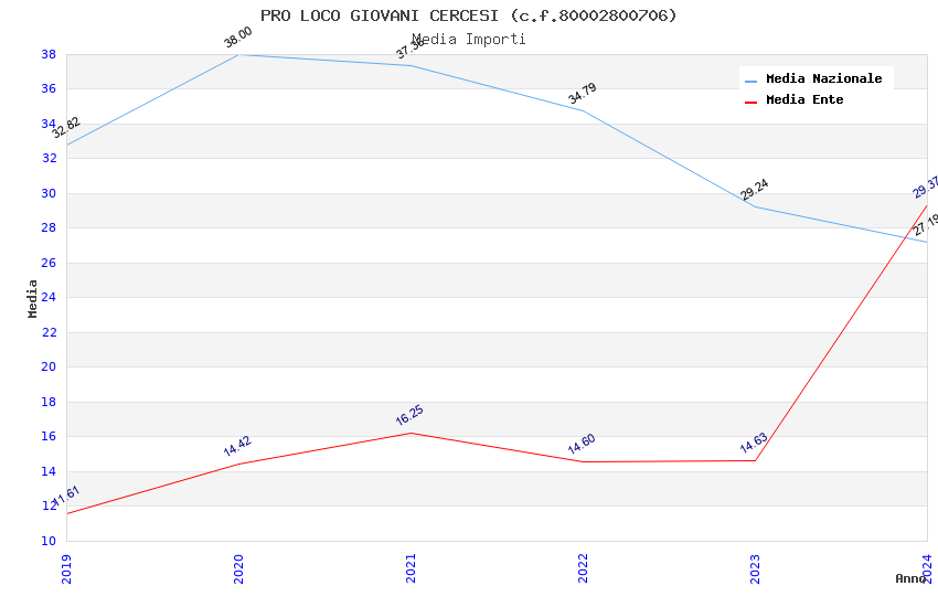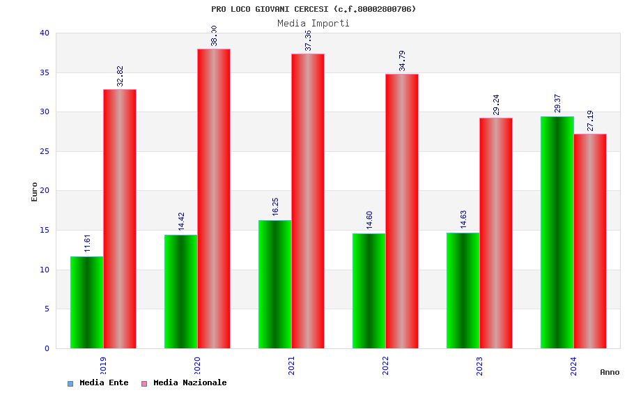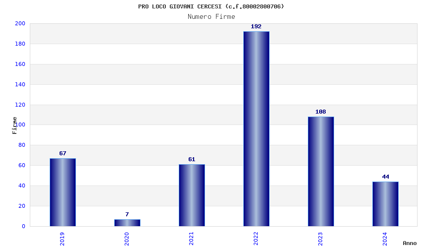 | Anno | Firme | Importi | Media | Naz. | Reg. | Prov. | Comu. |