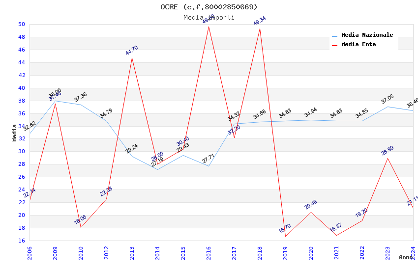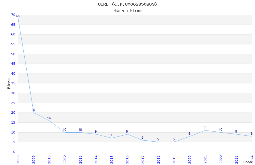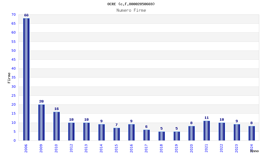 | Anno | Firme | Importi | Media | Naz. | Reg. | Prov. | Comu. |
