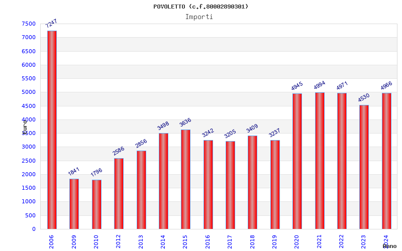 | Anno | Firme | Importi | Media | Naz. | Reg. | Prov. | Comu. |