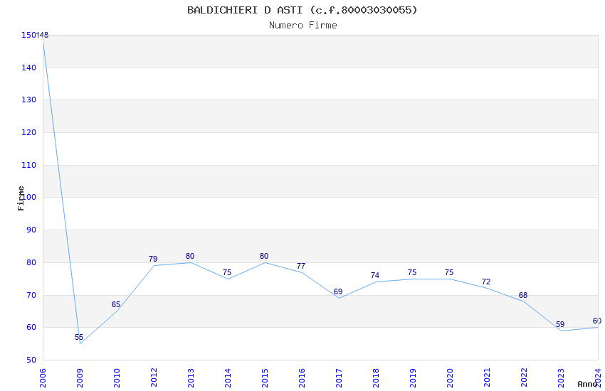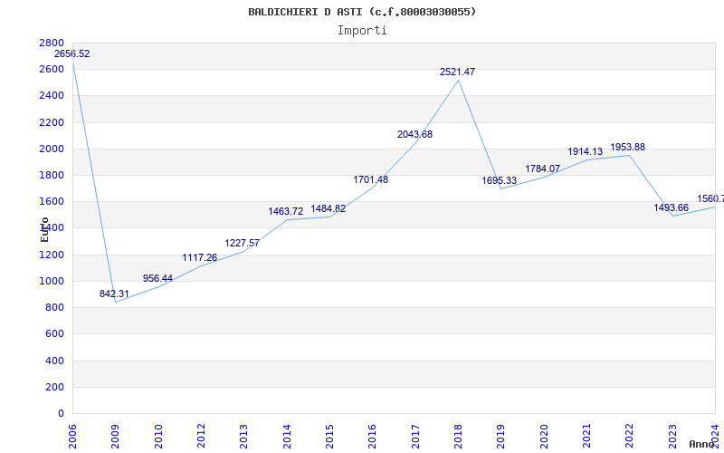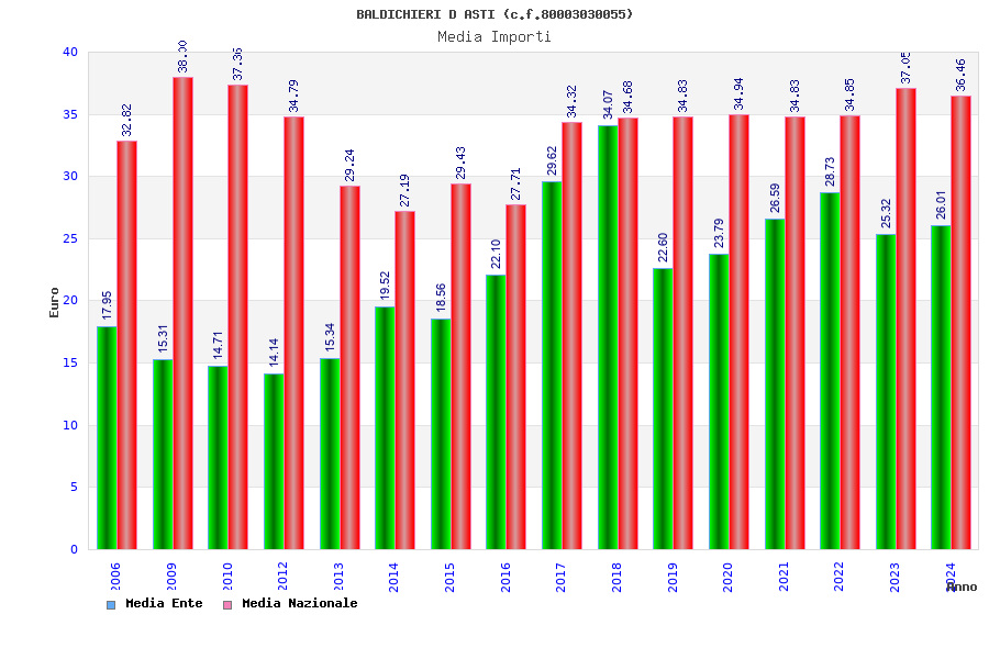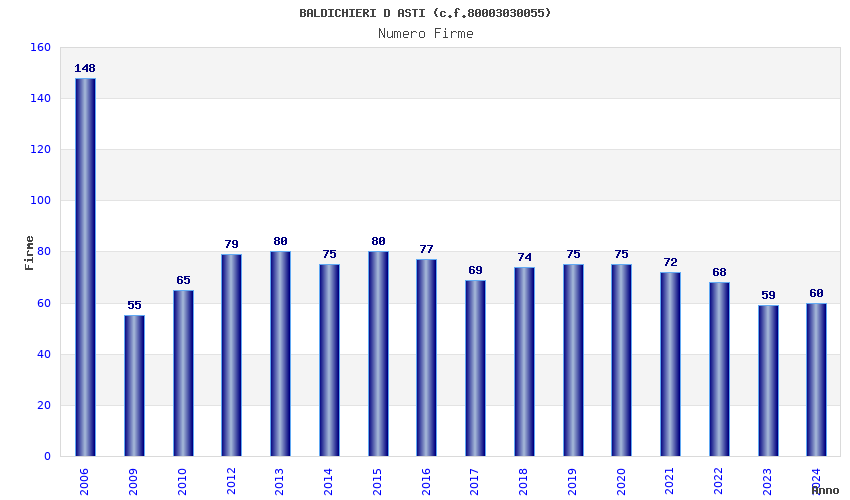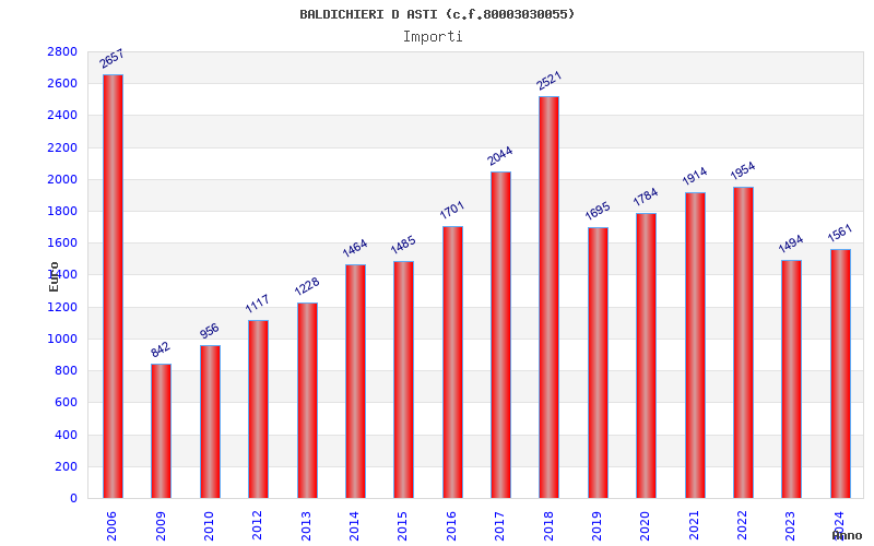 | Anno | Firme | Importi | Media | Naz. | Reg. | Prov. | Comu. |