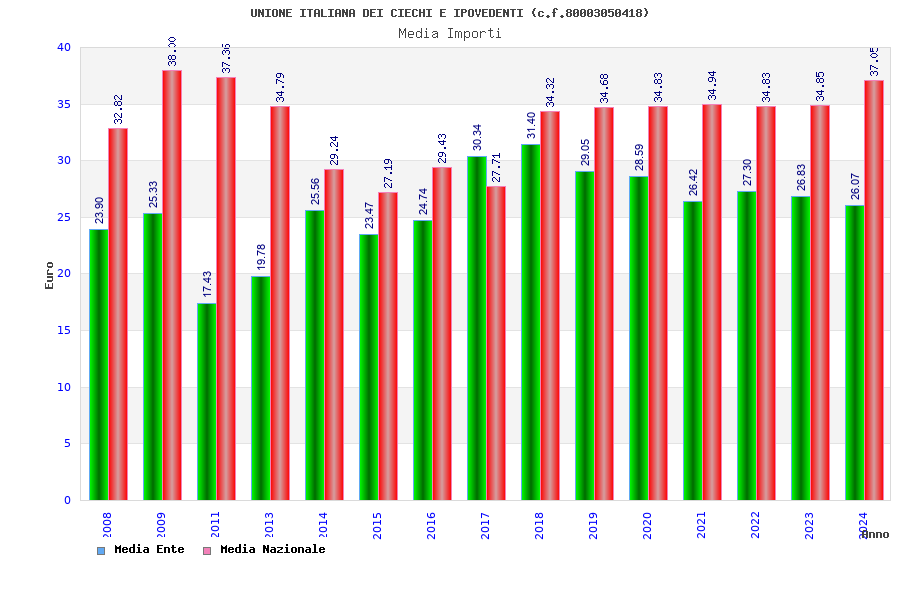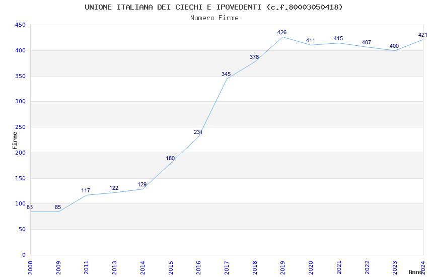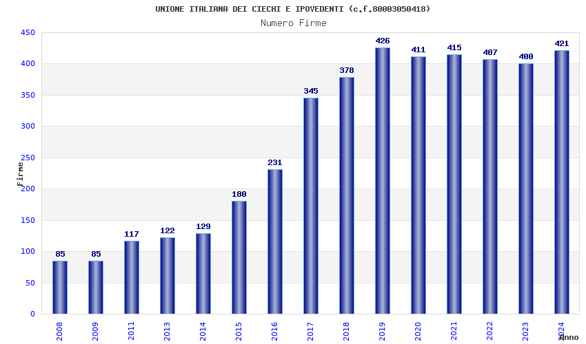 | Anno | Firme | Importi | Media | Naz. | Reg. | Prov. | Comu. |