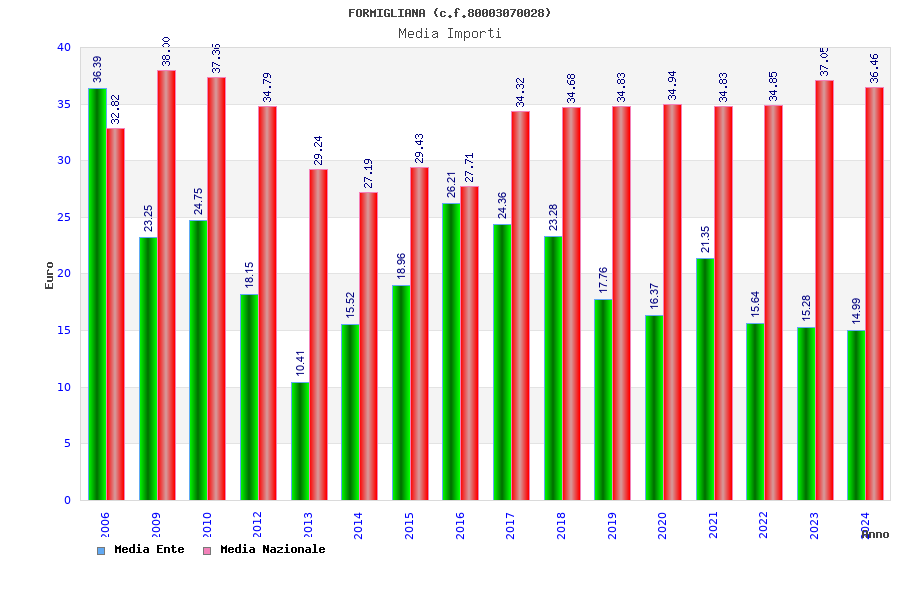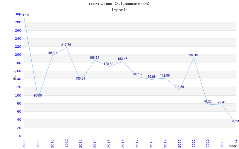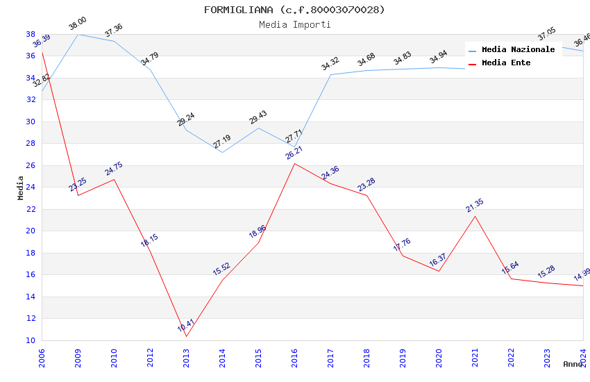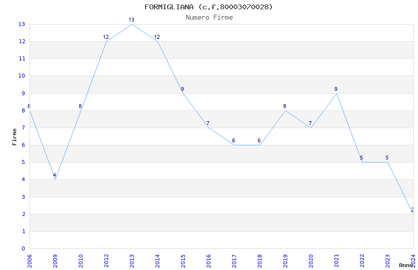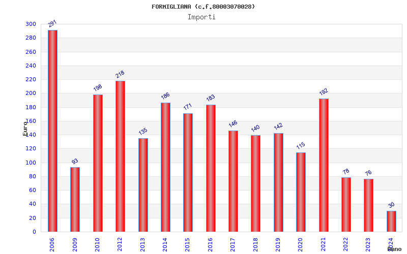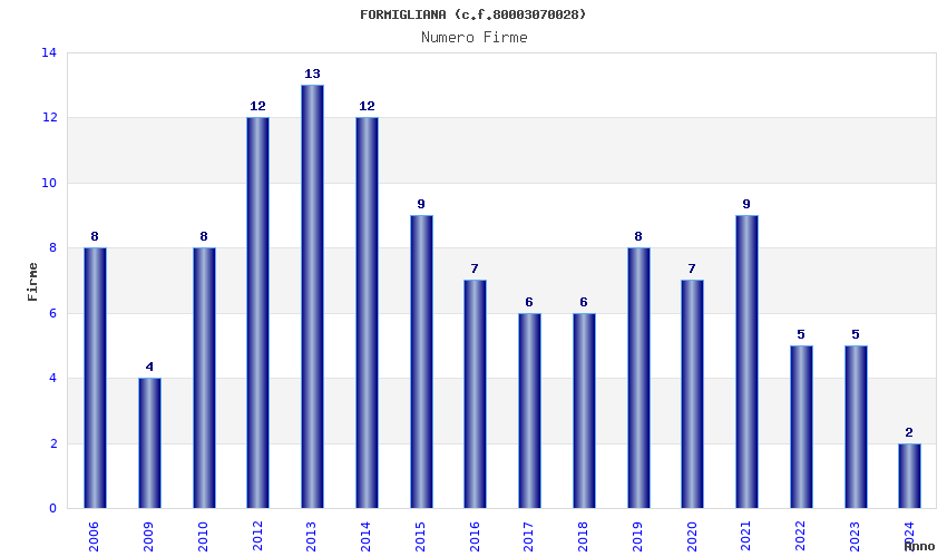 | Anno | Firme | Importi | Media | Naz. | Reg. | Prov. | Comu. |