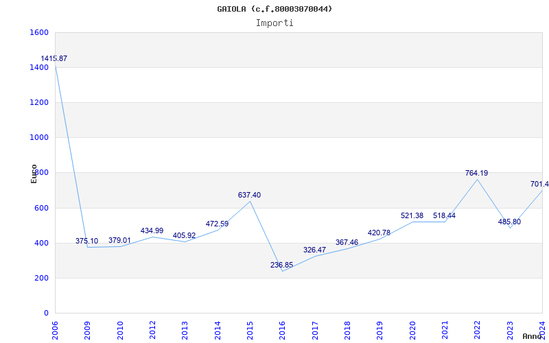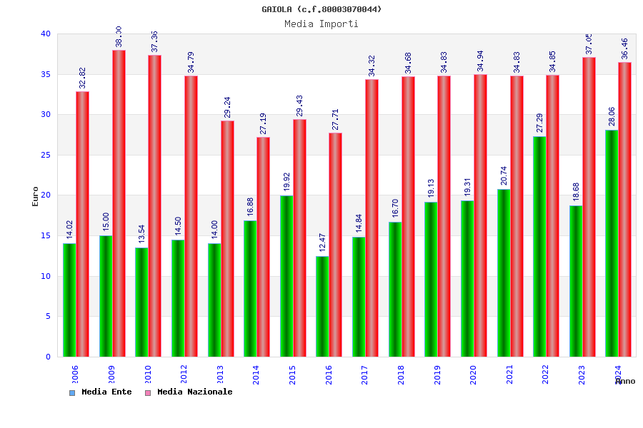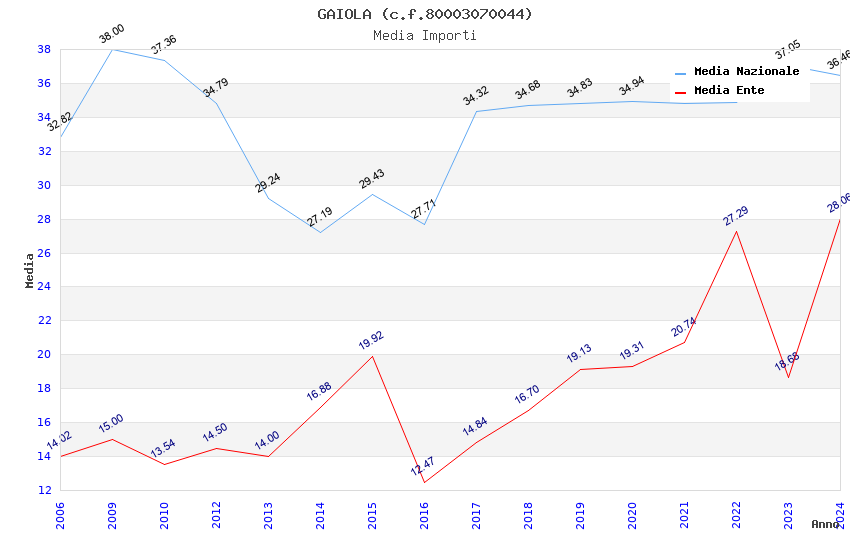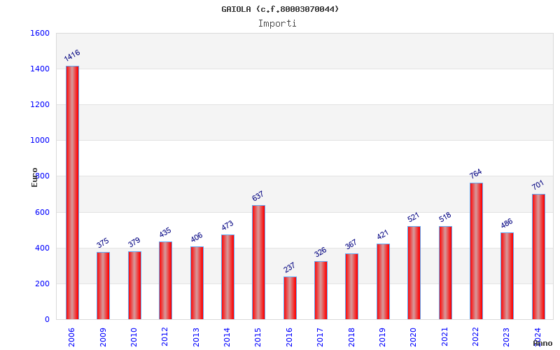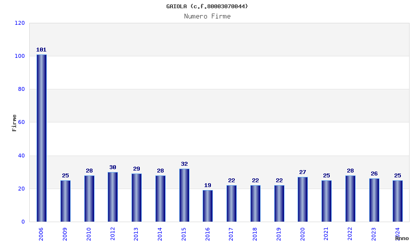 | Anno | Firme | Importi | Media | Naz. | Reg. | Prov. | Comu. |