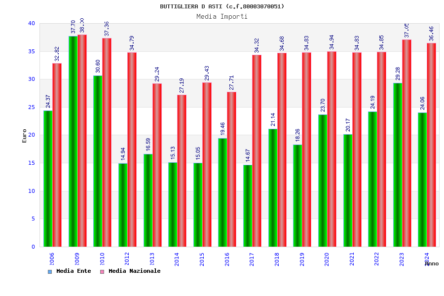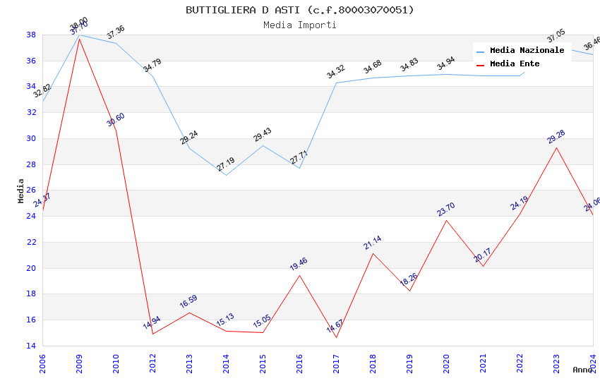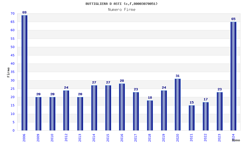| Anno | Firme | Importi | Media | Naz. | Reg. | Prov. | Comu. |