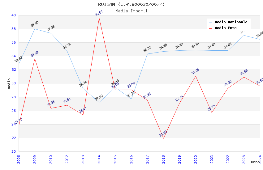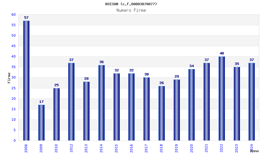 | Anno | Firme | Importi | Media | Naz. | Reg. | Prov. | Comu. |