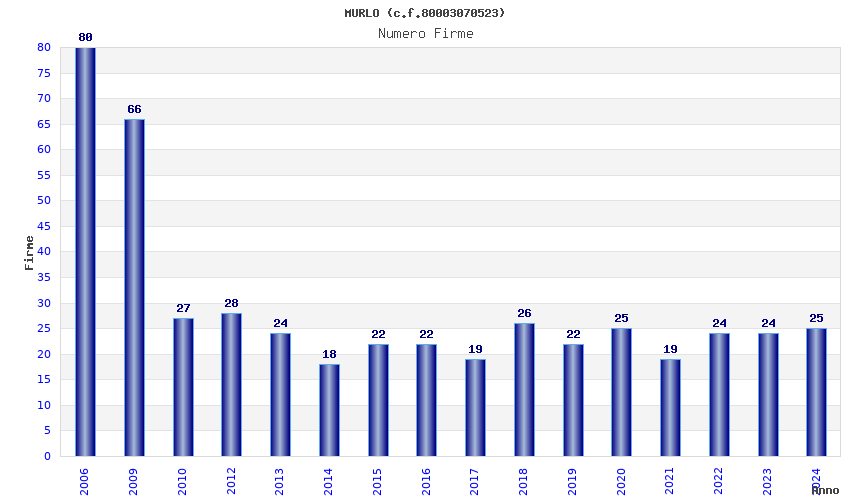 Anno Firme Importi Media Naz. Reg. Prov. Comu.