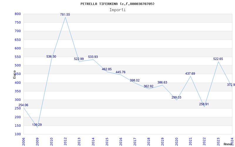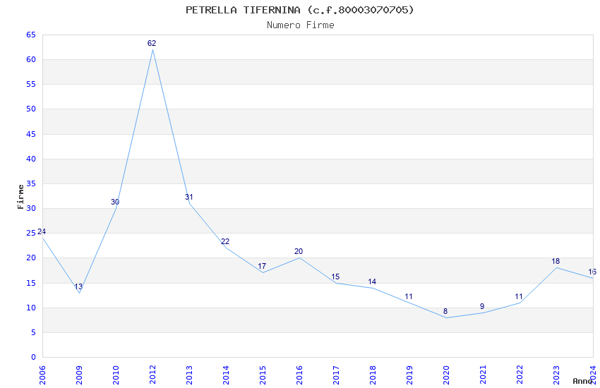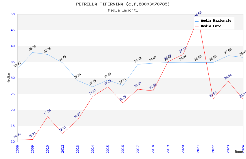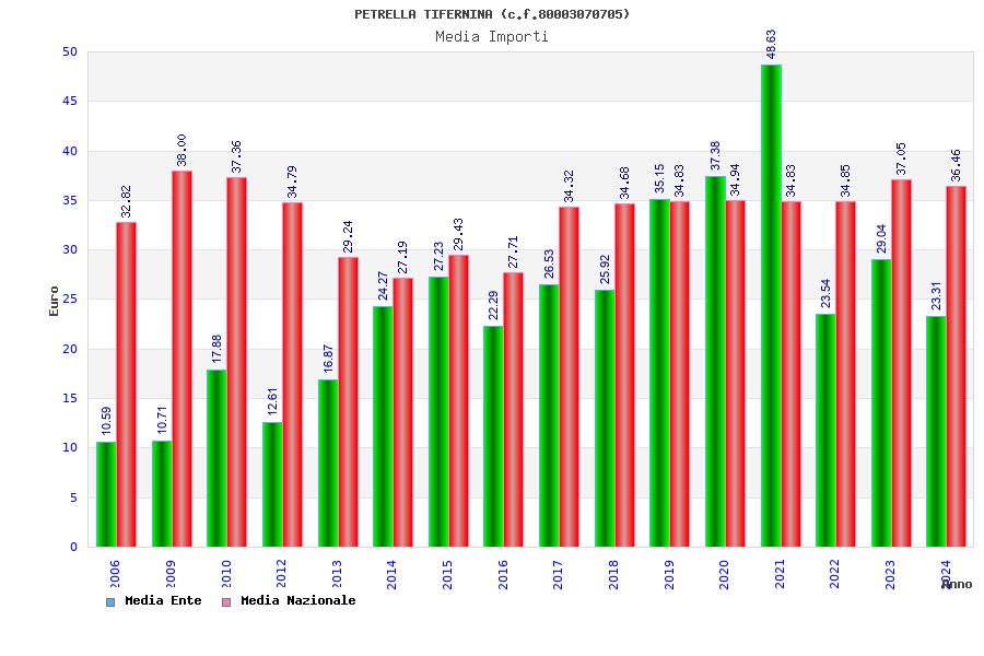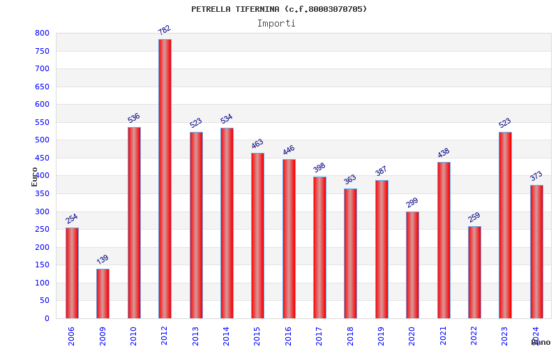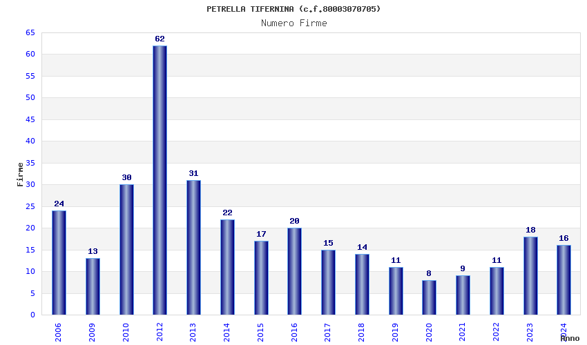 | Anno | Firme | Importi | Media | Naz. | Reg. | Prov. | Comu. |