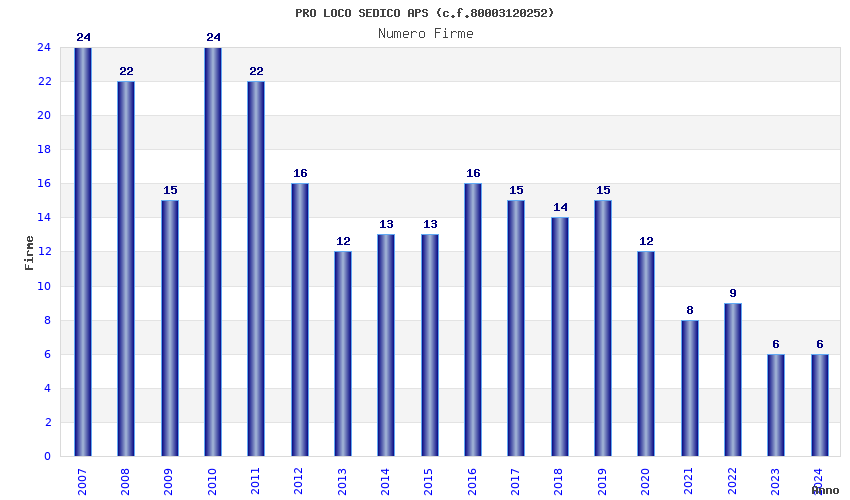 Anno Firme Importi Media Naz. Reg. Prov. Comu.