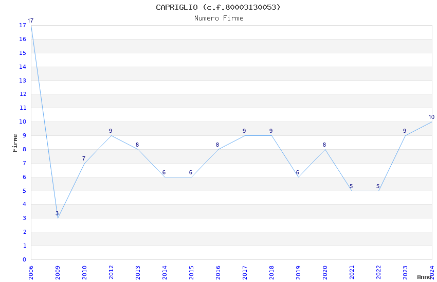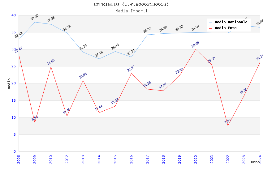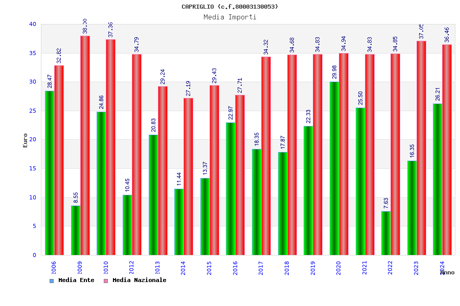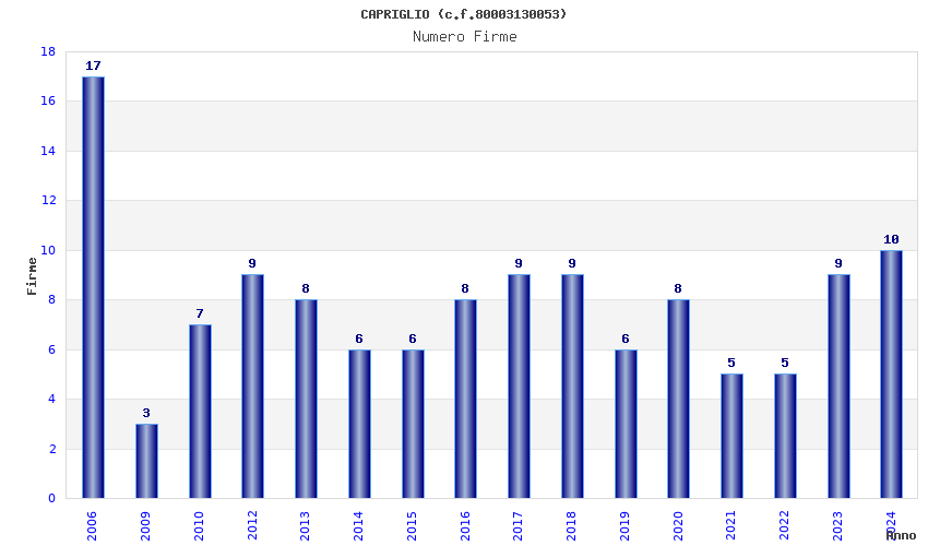 | Anno | Firme | Importi | Media | Naz. | Reg. | Prov. | Comu. |