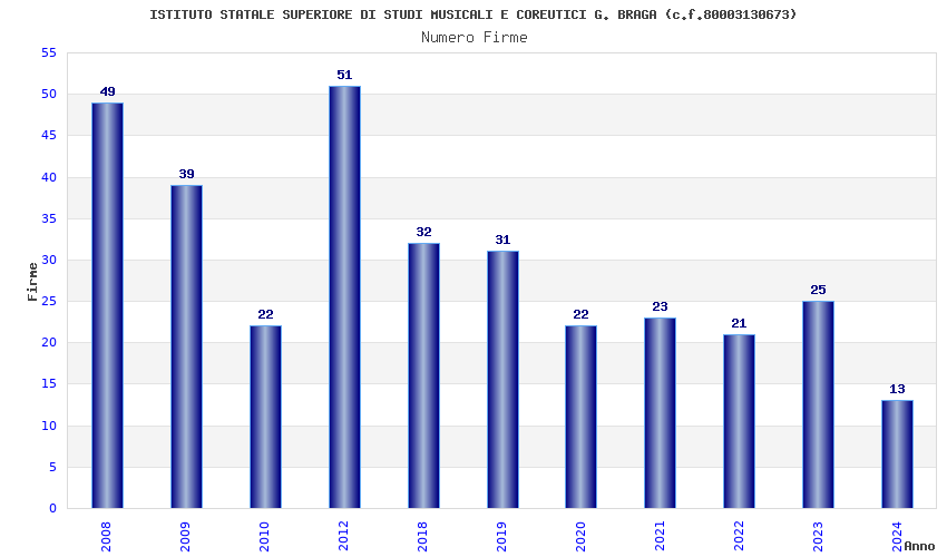 | Anno | Firme | Importi | Media | Naz. | Reg. | Prov. | Comu. |