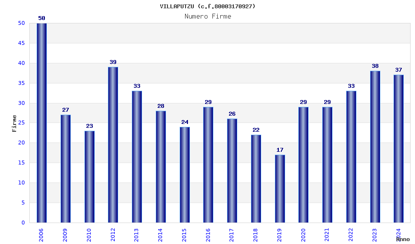 | Anno | Firme | Importi | Media | Naz. | Reg. | Prov. | Comu. |