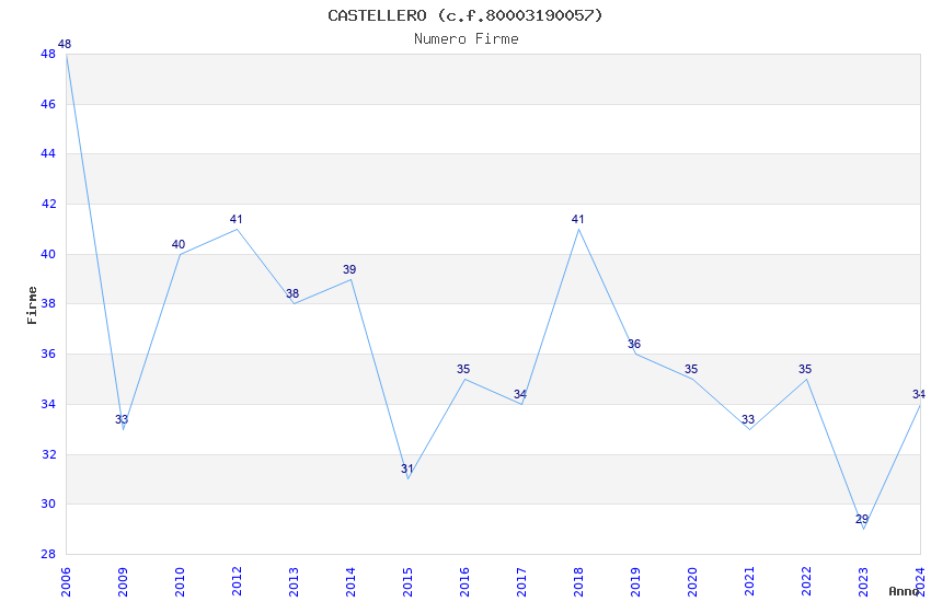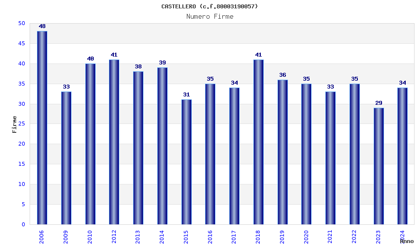 | Anno | Firme | Importi | Media | Naz. | Reg. | Prov. | Comu. |