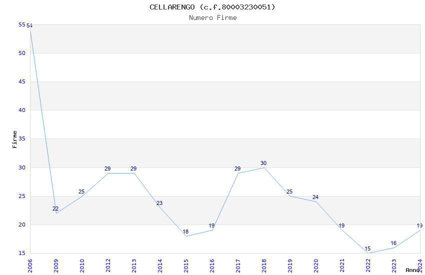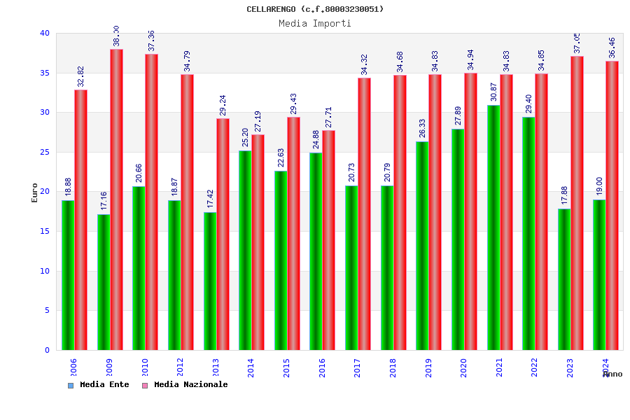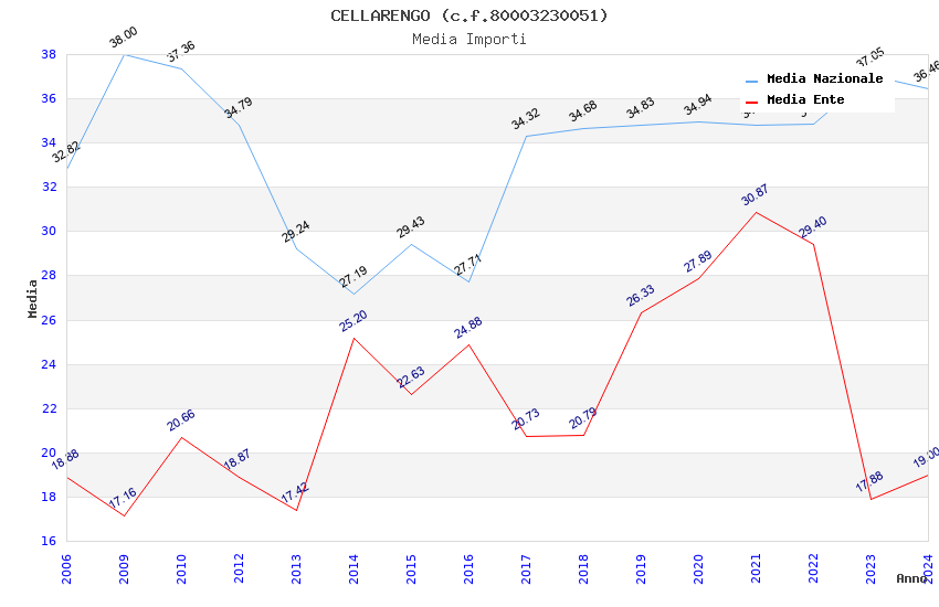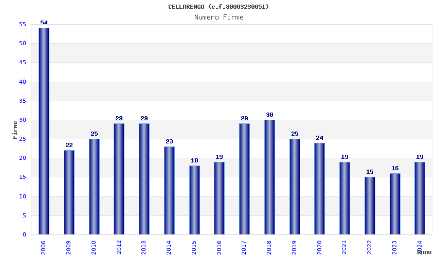 | Anno | Firme | Importi | Media | Naz. | Reg. | Prov. | Comu. |