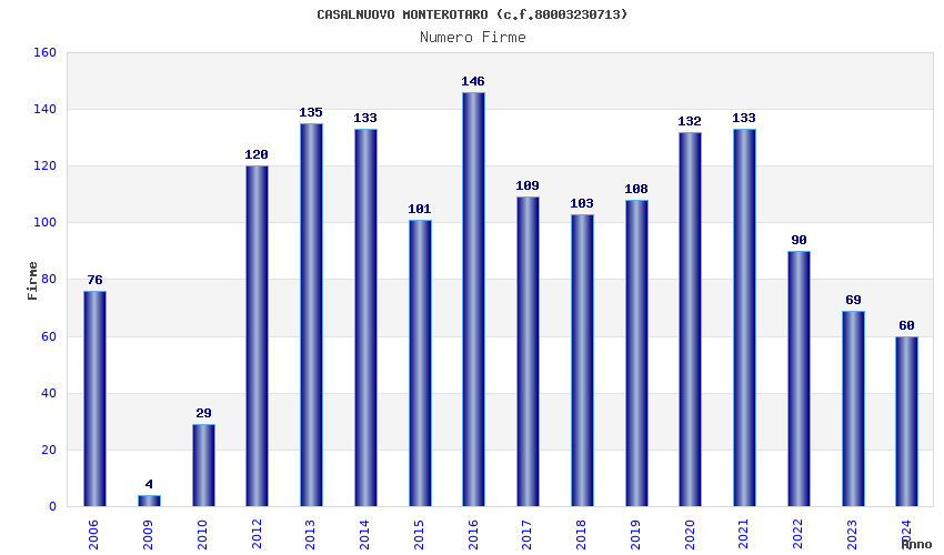 | Anno | Firme | Importi | Media | Naz. | Reg. | Prov. | Comu. |