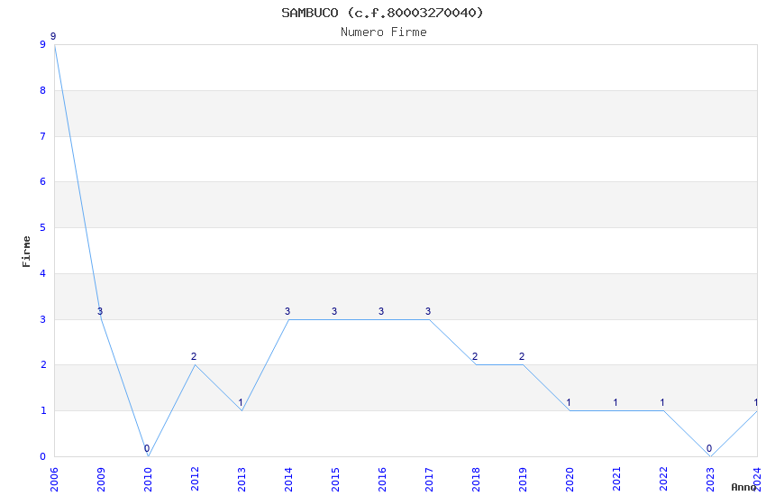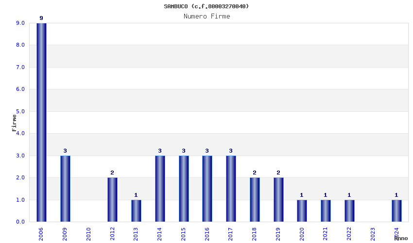 | Anno | Firme | Importi | Media | Naz. | Reg. | Prov. | Comu. |