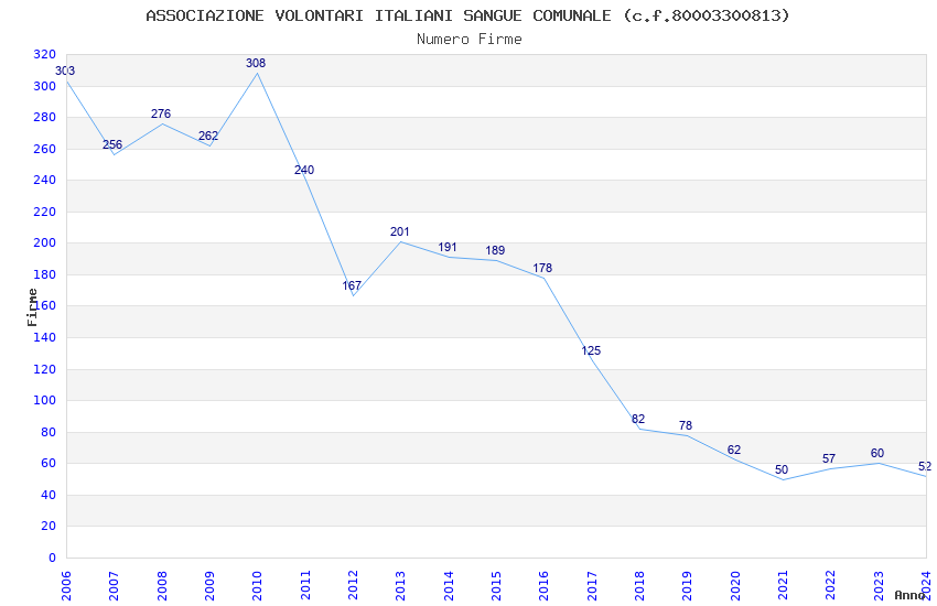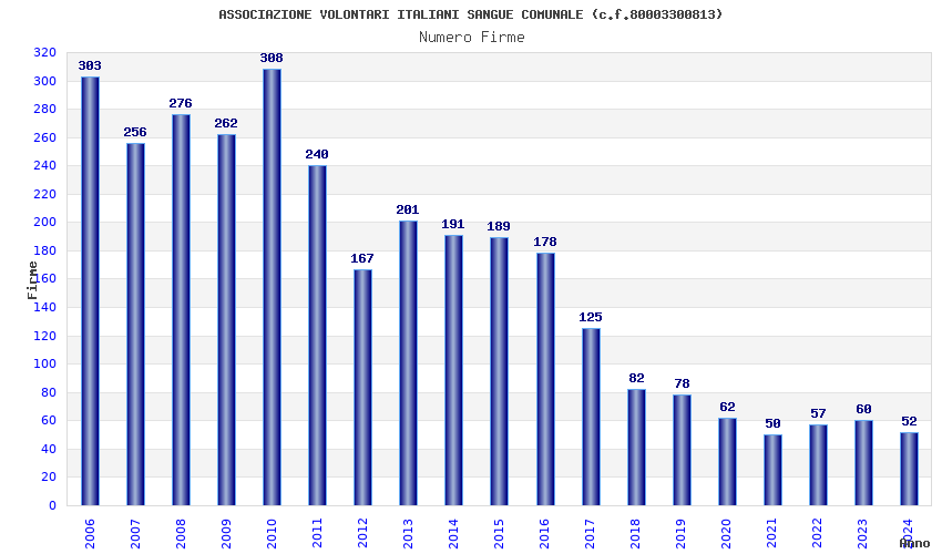 | Anno | Firme | Importi | Media | Naz. | Reg. | Prov. | Comu. |
