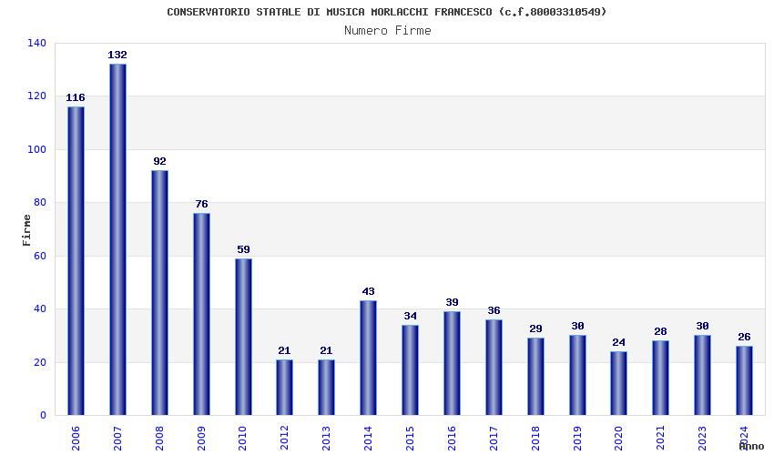 | Anno | Firme | Importi | Media | Naz. | Reg. | Prov. | Comu. |