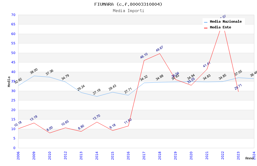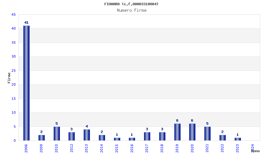 | Anno | Firme | Importi | Media | Naz. | Reg. | Prov. | Comu. |