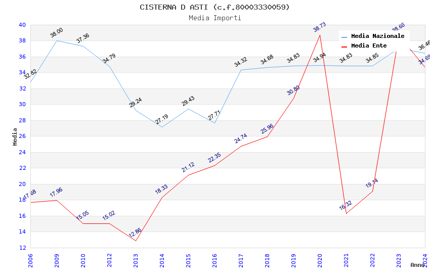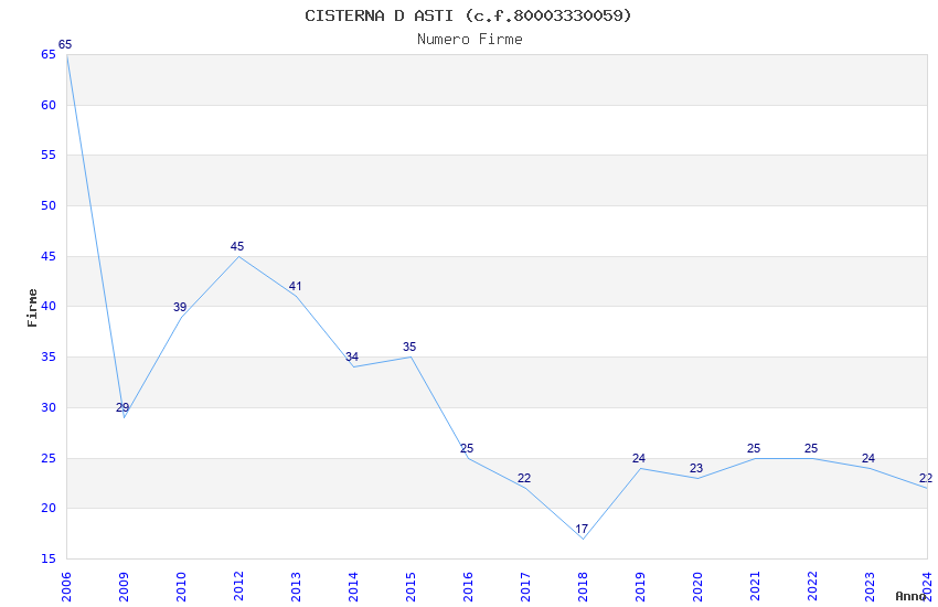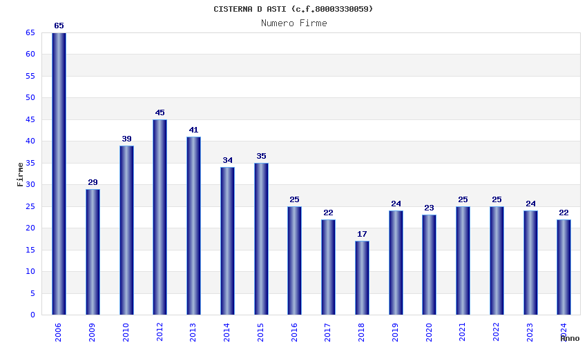 | Anno | Firme | Importi | Media | Naz. | Reg. | Prov. | Comu. |