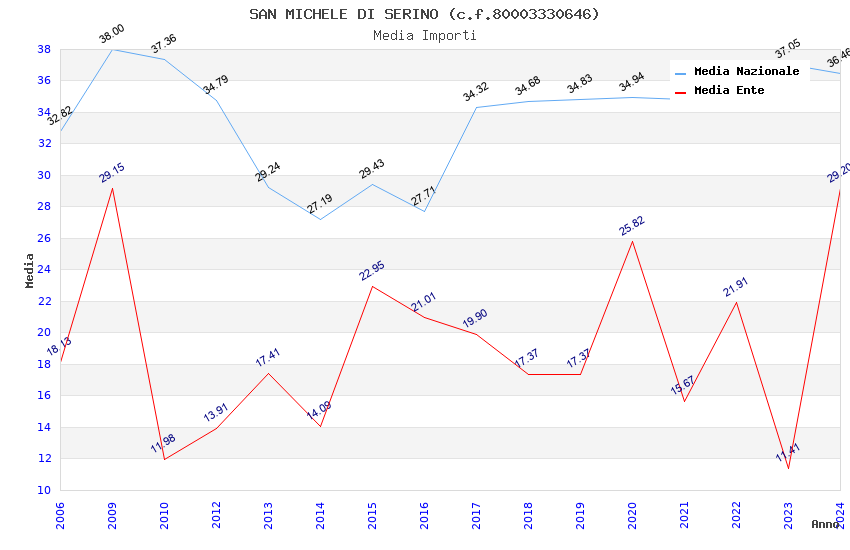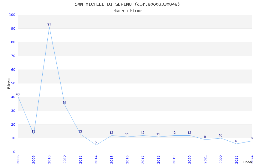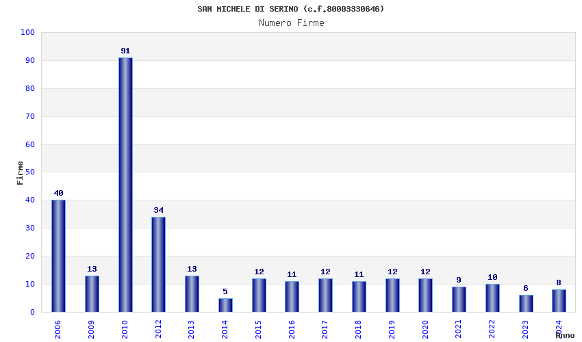 | Anno | Firme | Importi | Media | Naz. | Reg. | Prov. | Comu. |