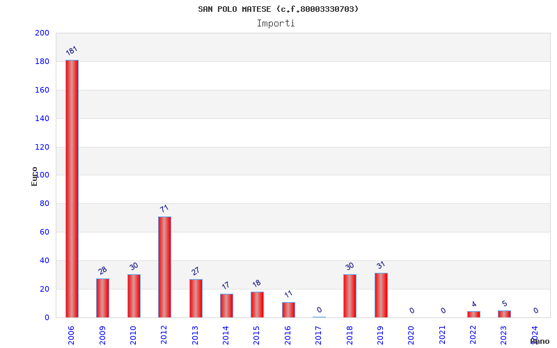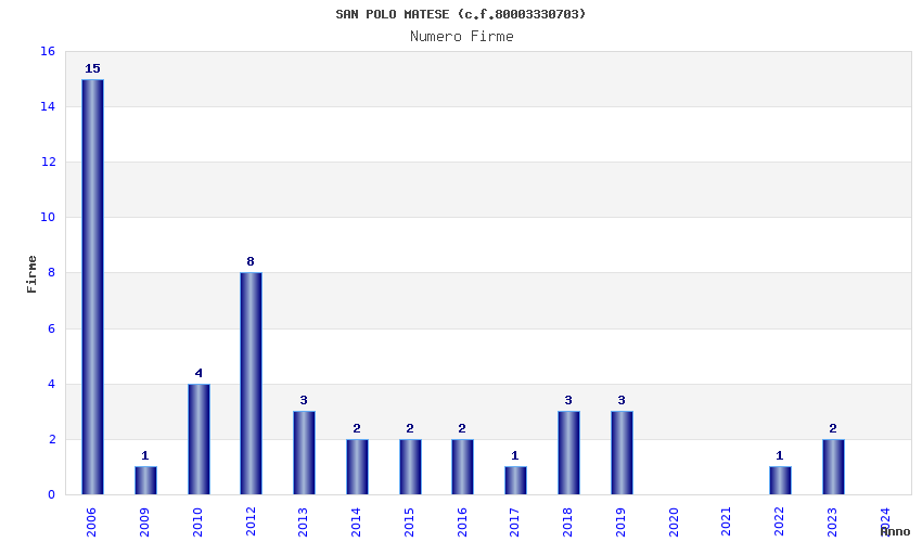 | Anno | Firme | Importi | Media | Naz. | Reg. | Prov. | Comu. |