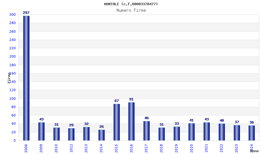 Anno Firme Importi Media Naz. Reg. Prov. Comu.
