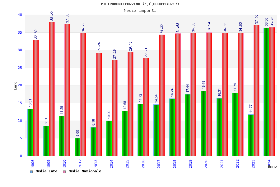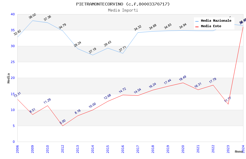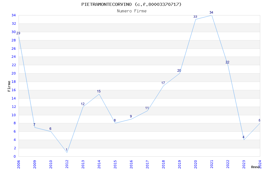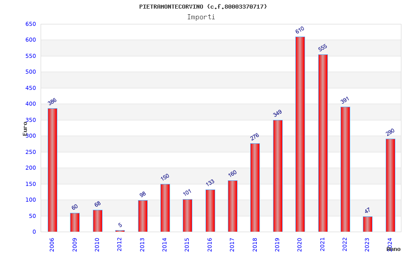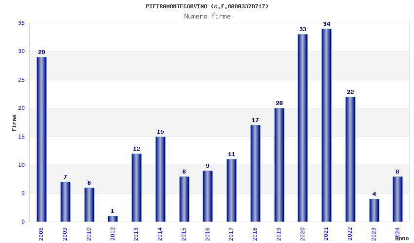 | Anno | Firme | Importi | Media | Naz. | Reg. | Prov. | Comu. |