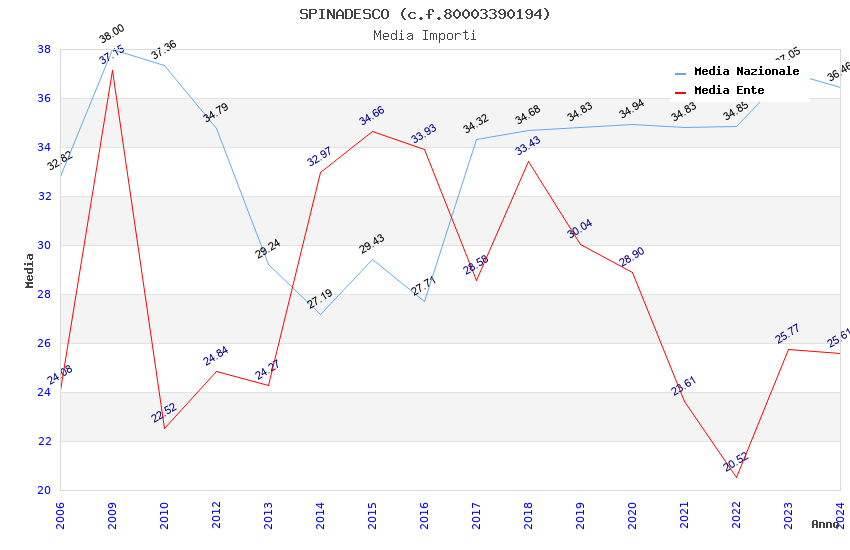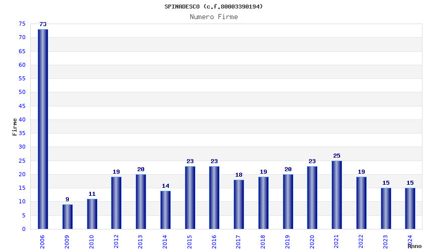 | Anno | Firme | Importi | Media | Naz. | Reg. | Prov. | Comu. |