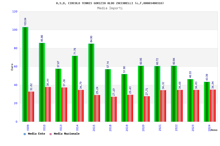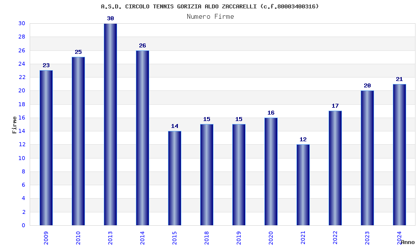 | Anno | Firme | Importi | Media | Naz. | Reg. | Prov. | Comu. |