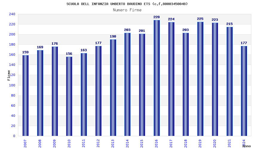 | Anno | Firme | Importi | Media | Naz. | Reg. | Prov. | Comu. |
