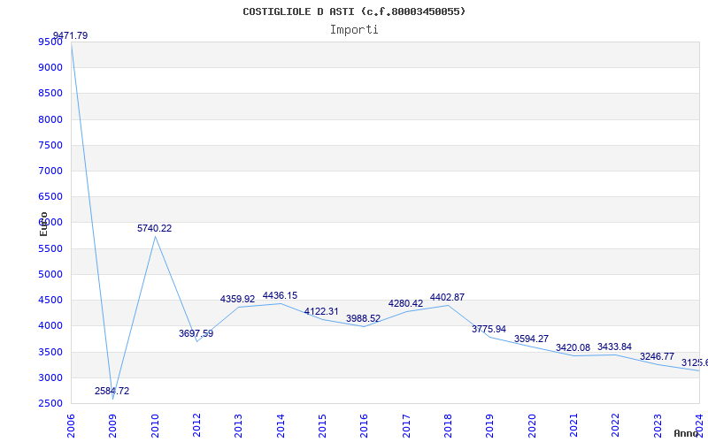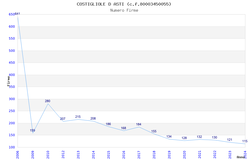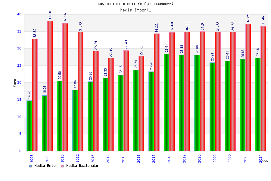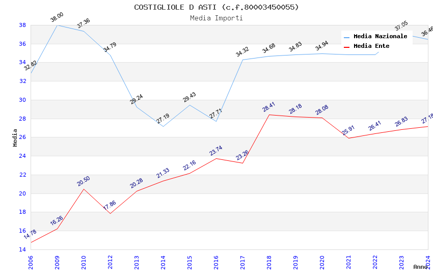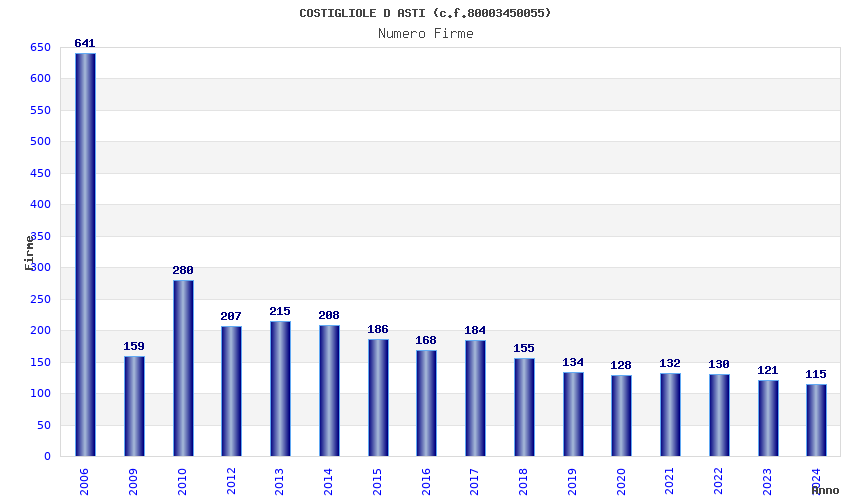 | Anno | Firme | Importi | Media | Naz. | Reg. | Prov. | Comu. |