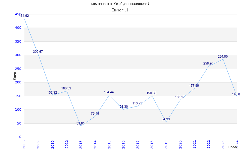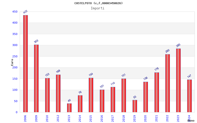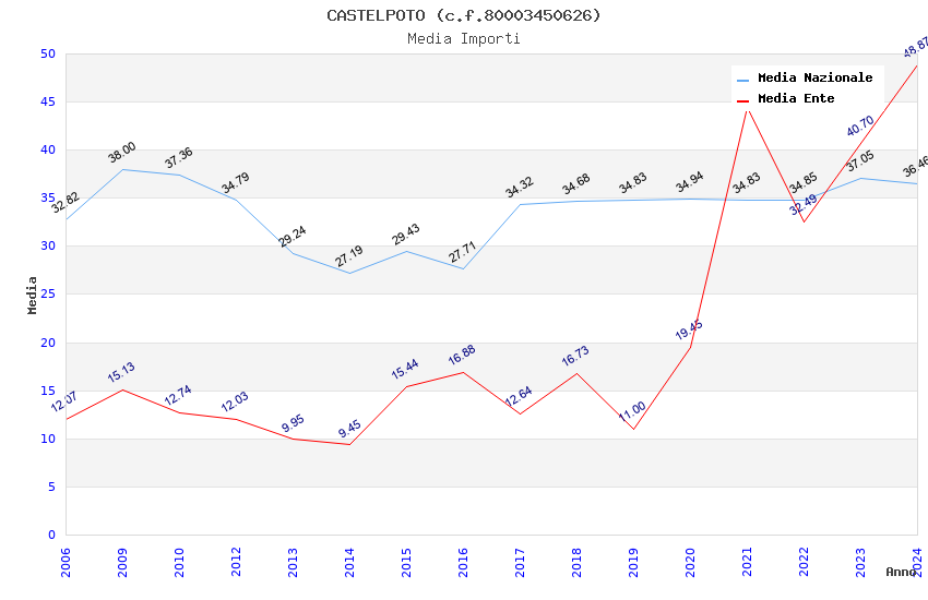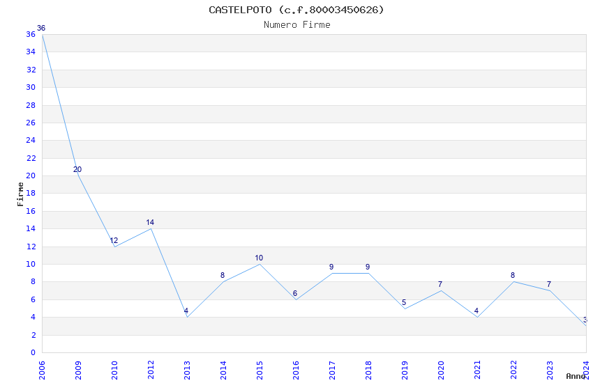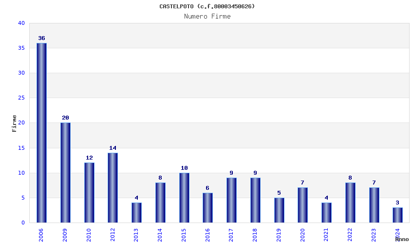 | Anno | Firme | Importi | Media | Naz. | Reg. | Prov. | Comu. |
