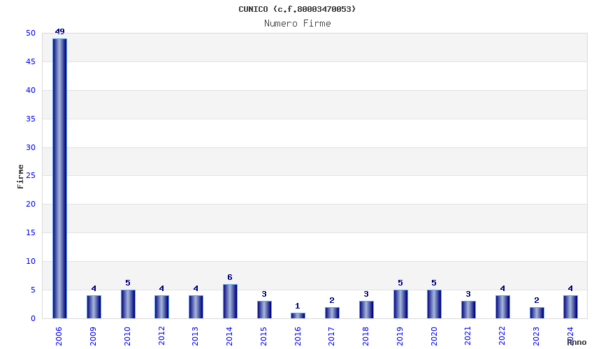 Anno Firme Importi Media Naz. Reg. Prov. Comu.