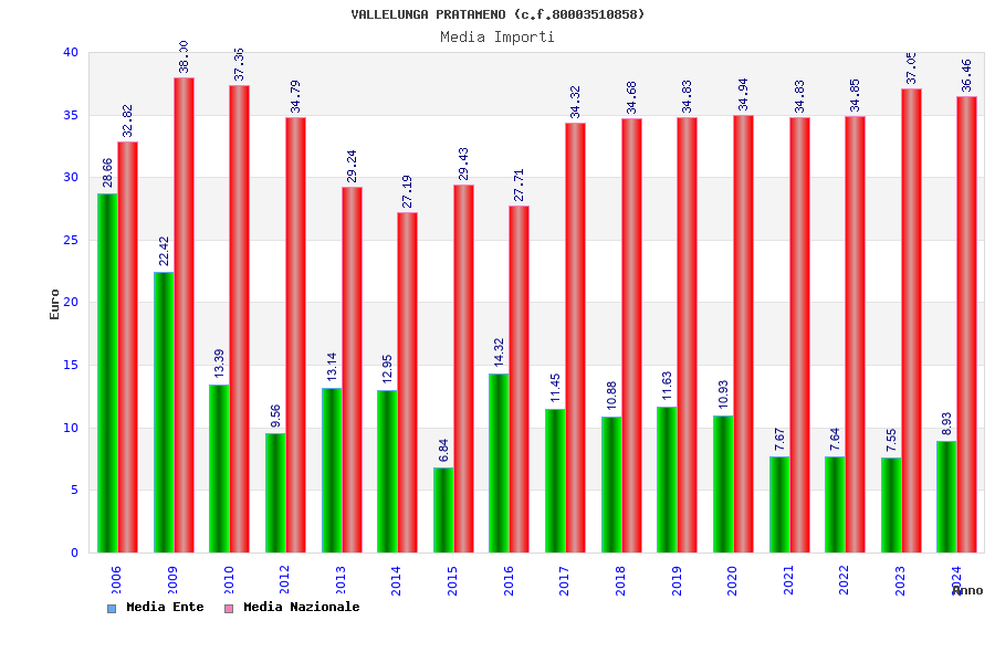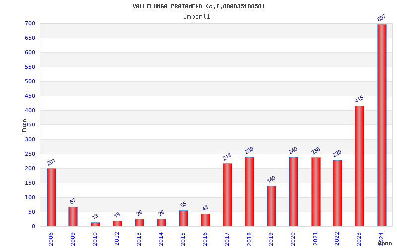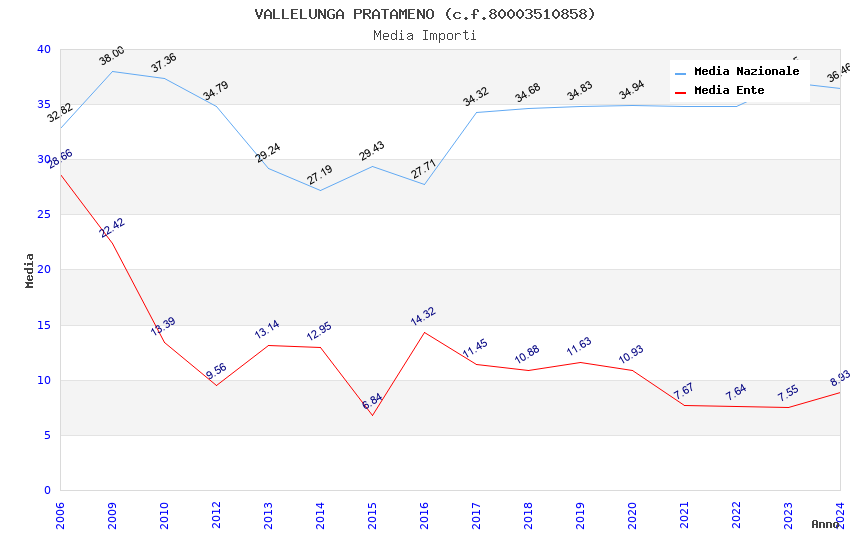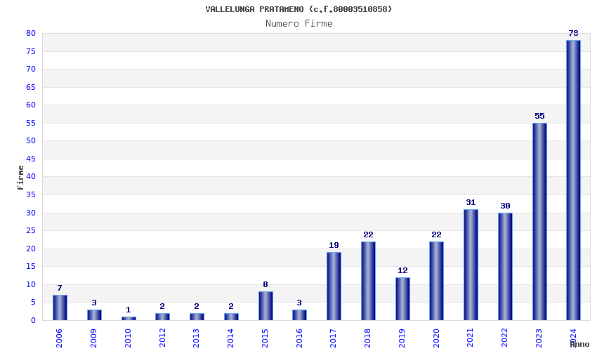 | Anno | Firme | Importi | Media | Naz. | Reg. | Prov. | Comu. |