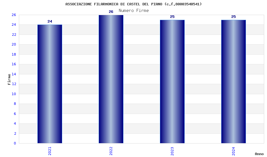 | Anno | Firme | Importi | Media | Naz. | Reg. | Prov. | Comu. |