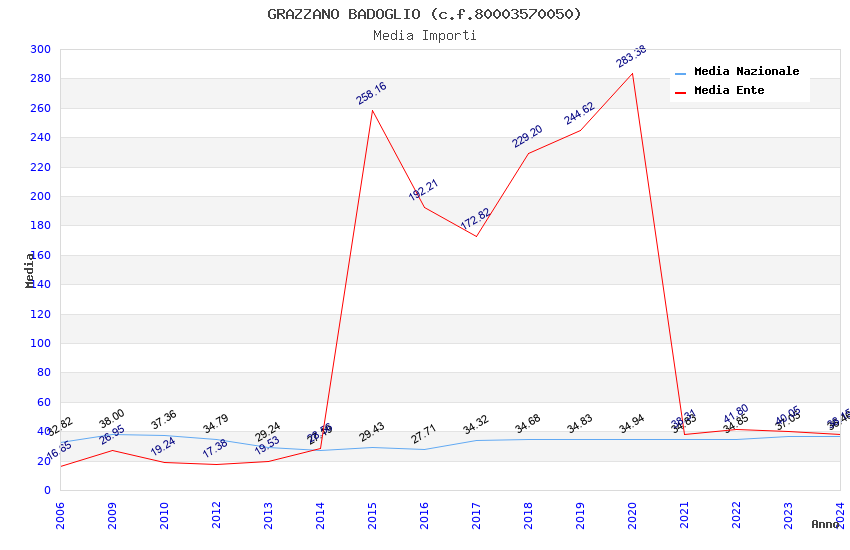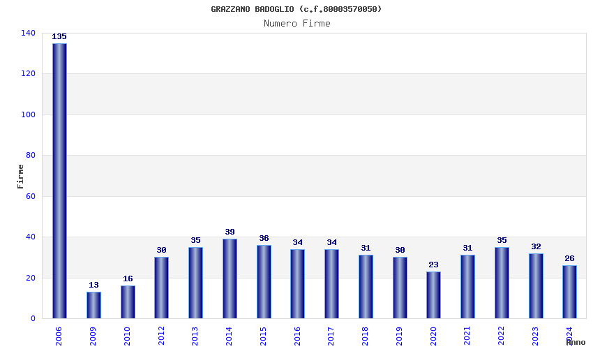 | Anno | Firme | Importi | Media | Naz. | Reg. | Prov. | Comu. |