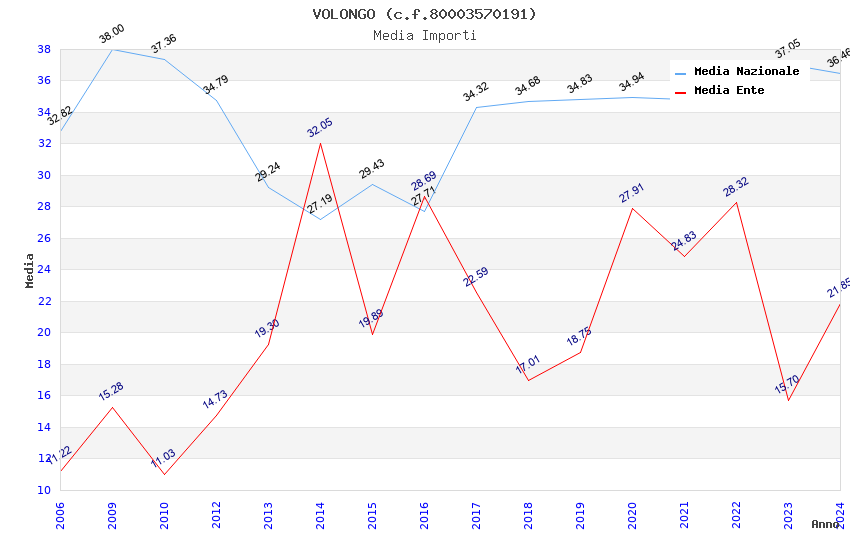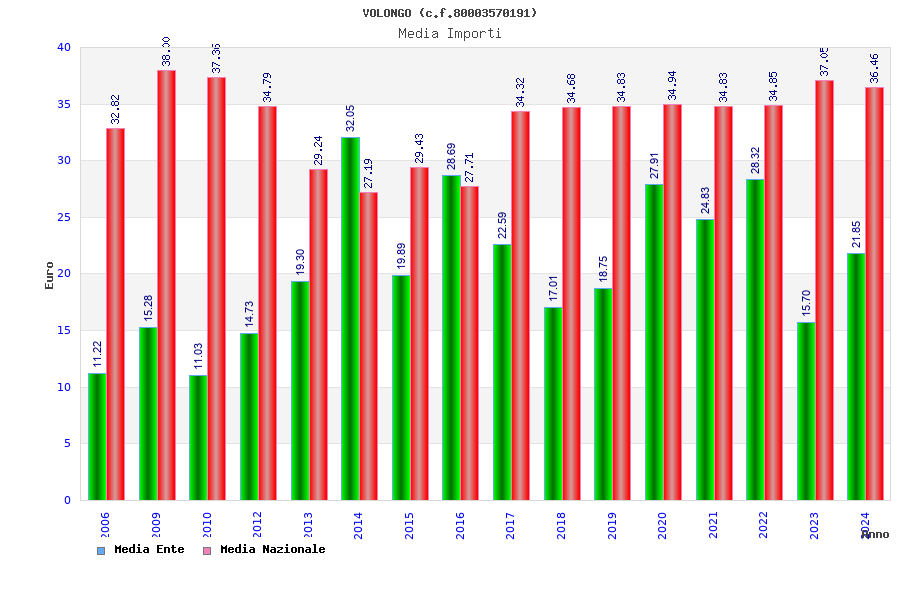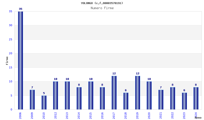 | Anno | Firme | Importi | Media | Naz. | Reg. | Prov. | Comu. |