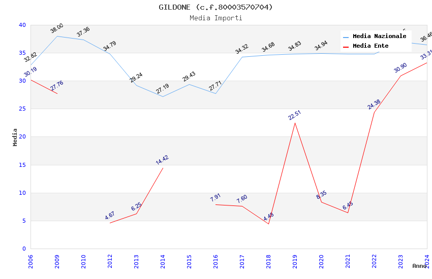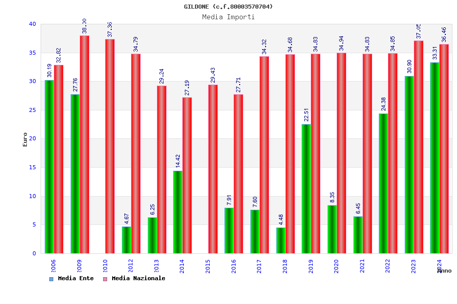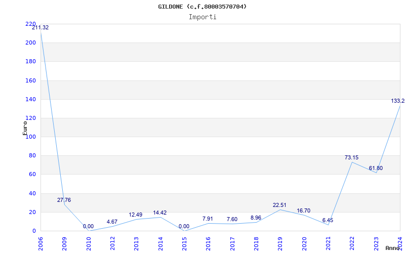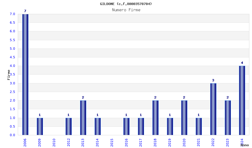 | Anno | Firme | Importi | Media | Naz. | Reg. | Prov. | Comu. |
