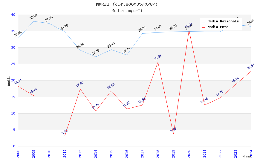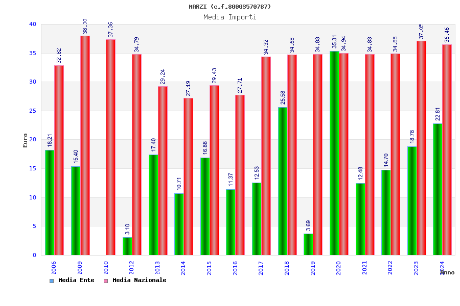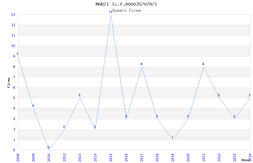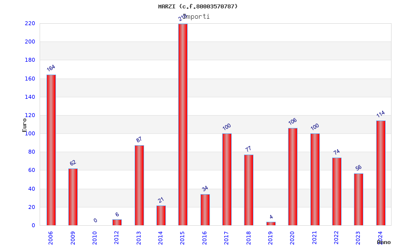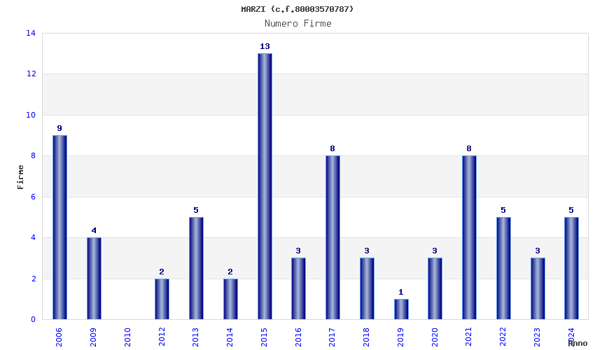 | Anno | Firme | Importi | Media | Naz. | Reg. | Prov. | Comu. |
