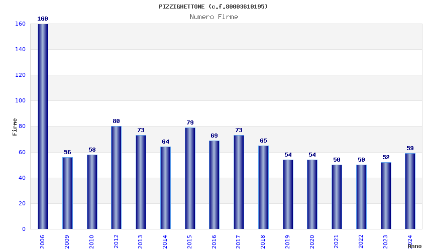 | Anno | Firme | Importi | Media | Naz. | Reg. | Prov. | Comu. |